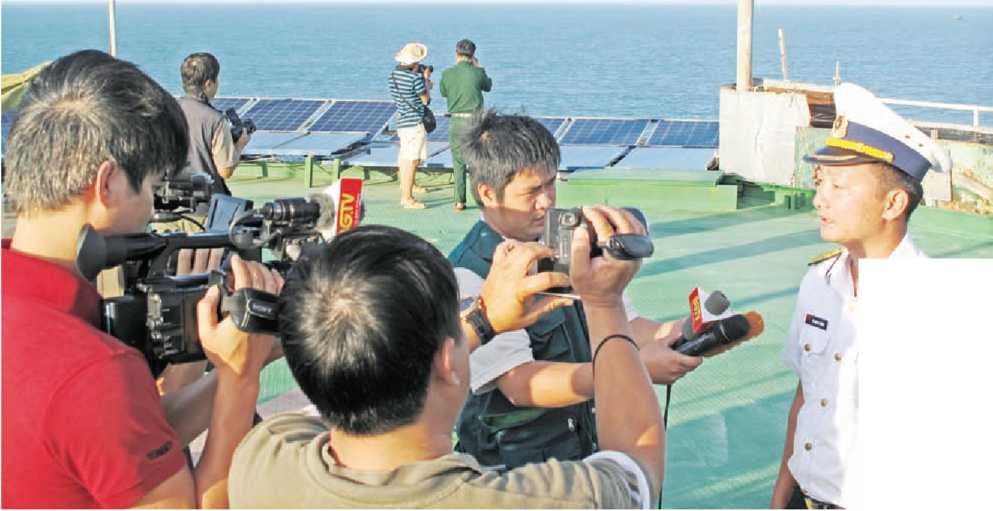 Phóng viên Báo Bắc Giang tác nghiệp tại Trường Sa.