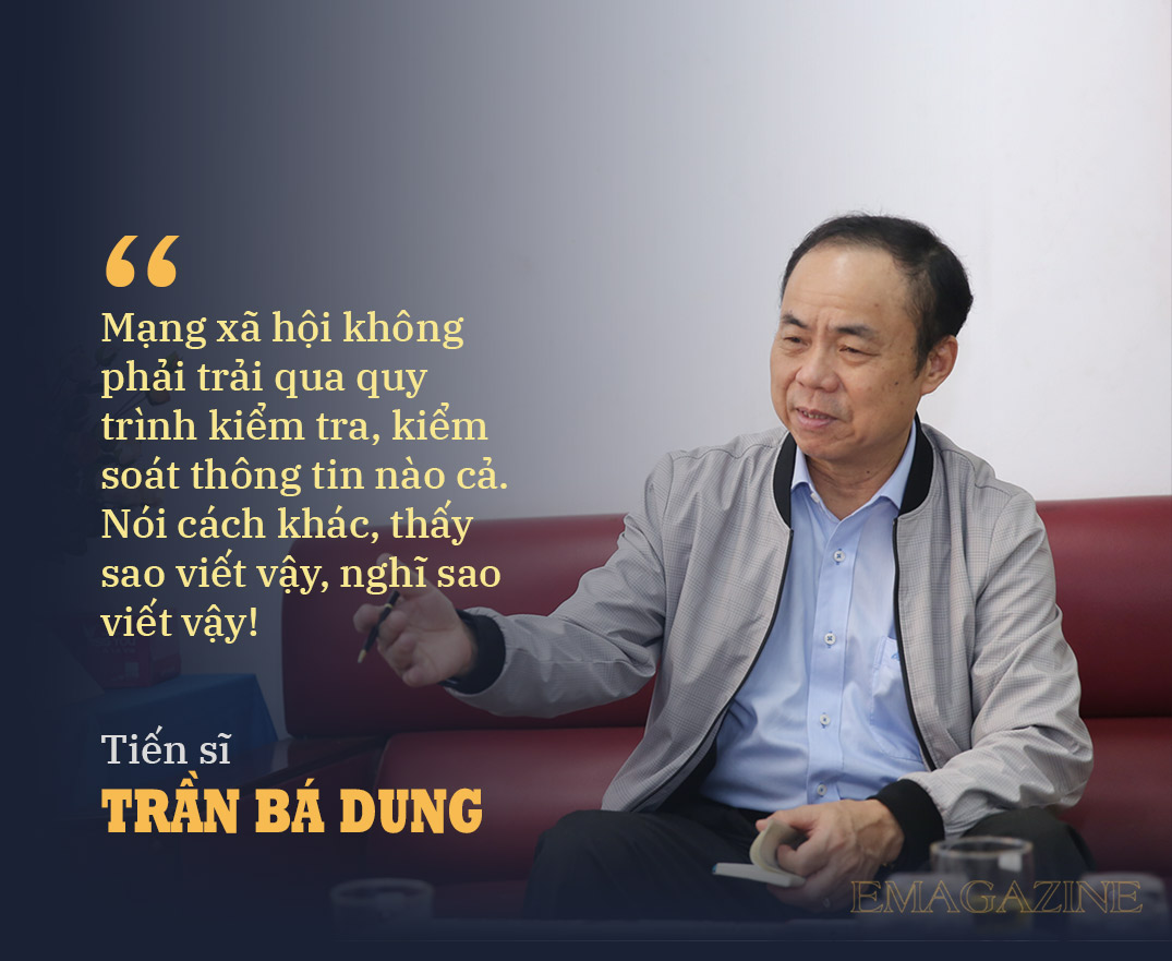 PV: Xin chào Tiến sĩ Trần Bá Dung! Sự phát triển như vũ bão của mạng xã hội nói riêng, Internet nói chung đã và đang đặt báo chí vào những thách thức, cạnh tranh vô cùng gay gắt. Chúng ta nhận diện vấn đề này trên quan điểm như thế nào, thưa ông?