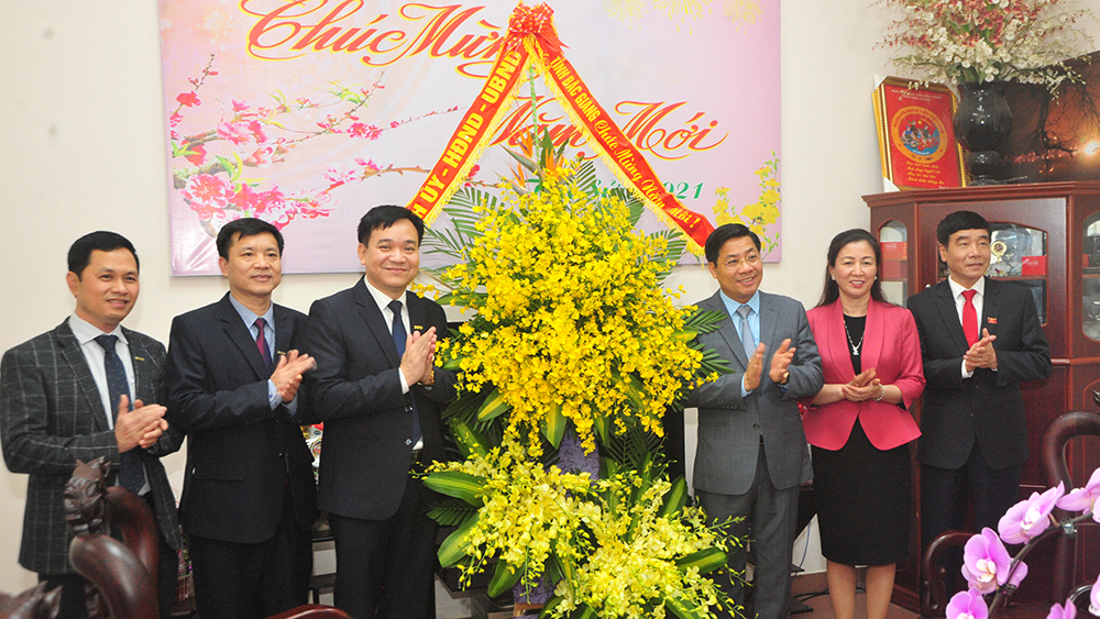(BGĐT) - Chiều 4/2, các đồng chí: Ủy viên T.Ư Đảng, Bí thư Tỉnh ủy, Chủ tịch HĐND tỉnh Dương Văn Thái; Phó Bí thư Thường trực Tỉnh ủy, Trưởng Đoàn đại biểu Quốc hội tỉnh Bắc Giang Lê Thị Thu Hồng; Chủ tịch UBND tỉnh Lê Ánh Dương đến thăm, chúc Tết một số cơ quan, đơn vị trên địa bàn tỉnh.