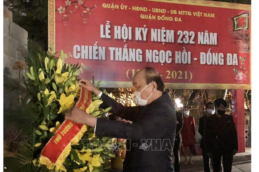 Nhân kỷ niệm 232 năm Chiến thắng Ngọc Hồi - Đống Đa (1789 - 2021), tối 15/2, tức Mồng 4 Tết Nguyên đán Tân Sửu 2021, Thủ tướng Chính phủ Nguyễn Xuân Phúc đã tới dâng hoa, dâng hương tại Tượng đài Quang Trung - Nguyễn Huệ và đền thờ Hoàng đế Quang Trung tại Di tích quốc gia đặc biệt Gò Đống Đa, Hà Nội.