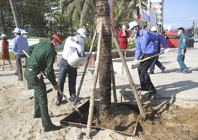 Sau khi lành đạo Thành phố kêu gọi toàn thể nhân dân tích cực tham gia trồng cây, trồng rừng, bảo vệ rừng để Nha Trang thật sự là điểm đến văn minh, thân thiện, các đại biểu đã cùng tham gia trồng cây ở bãi biển phía đông đường Trần Phú, TP. Nha Trang.