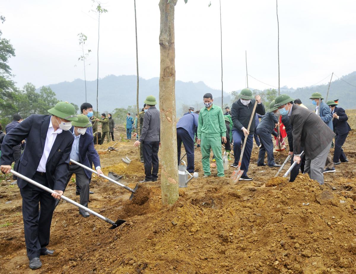 Sau lễ phát động, các đại biểu đã tham gia trồng cây tại khuôn viên của Khu di tích Nhà tưởng niệm Nguyễn Thái Học và các chiến sĩ hi sinh trong cuộc khởi nghĩa Yên Bái, tổ 3, phường Nguyễn Thái Học, thành phố Yên Bái.