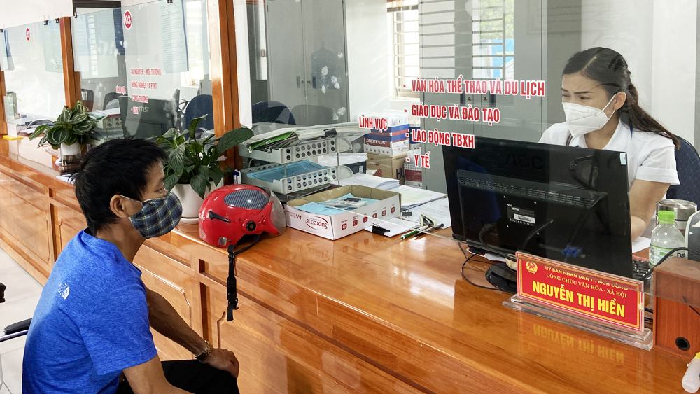 Cán bộ một cửa thị trấn Bích Động (Việt Yên) giải quyết thủ tục hành chính cho người dân. |