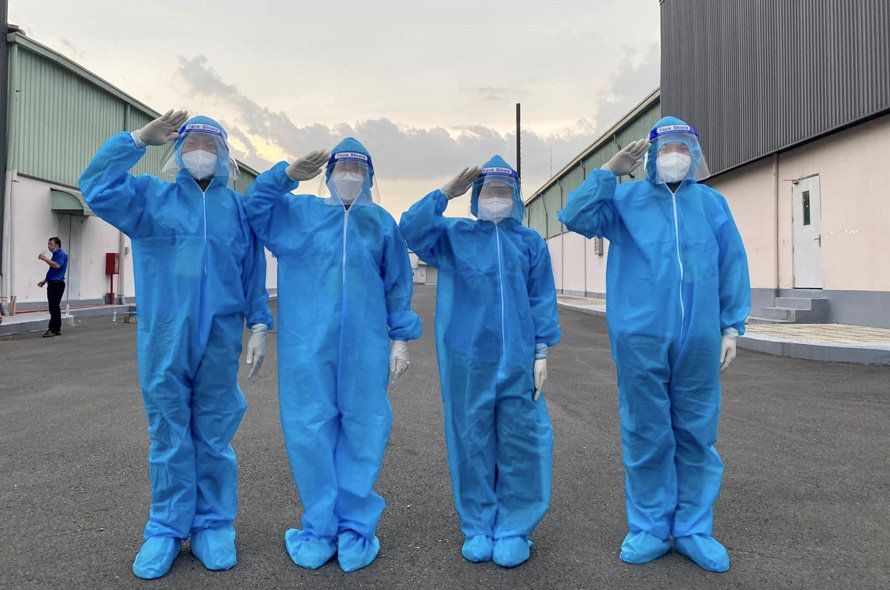 Thanh niên TX.Tân Uyên tình nguyện hỗ trợ phòng, chống dịch bệnh Covid-19 ở phường Tân Phước Khánh, tỉnh Bình Dương. (Ảnh: Báo Bình Dương Online)