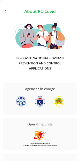 Ứng dụng PC-Covid là ứng dụng phòng, chống dịch Covid-19 quốc gia được tích hợp, nâng cấp từ tất cả các ứng dụng Bluezone, VHD, NCOVI; là ứng dụng duy nhất phục vụ phòng, chống dịch Covid-19 và thay thế các ứng dụng trước đây. Ứng dụng này hỗ trợ nhiều tính năng như: Thẻ thông tin Covid-19; mã QR code; khai báo y tế; tiêm vắc xin; thông tin xét nghiệm;… Truy cập vào website https://pccovid.gov.vn/ để biết thêm thông tin chi tiết về ứng dụng này.