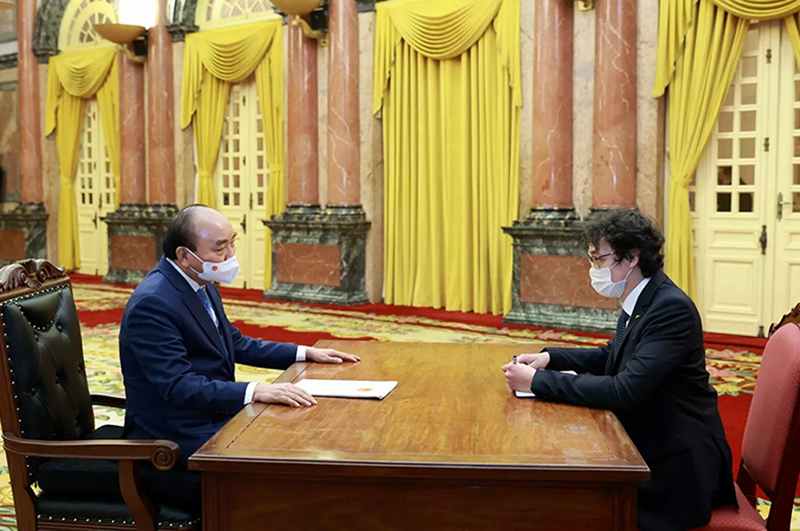 Chủ tịch nước Nguyễn Xuân Phúc trả lời phỏng vấn Sputnik. (Ảnh: Sputnik)