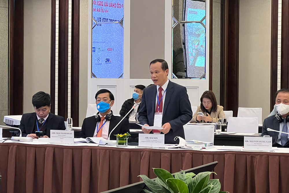 Sáng 25/11, Phó Chủ tịch Thường trực UBND tỉnh Mai Sơn dự Hội nghị “Gặp gỡ châu Âu 2021: Đối tác Việt Nam - EU hậu Covid -19 và công bố sách trắng EROCHAM 2021” do Hiệp Hội doanh nghiệp châu Âu tại Việt Nam (EROCHAM) và Bộ Ngoại giao đồng tổ chức tại Hà Nội.