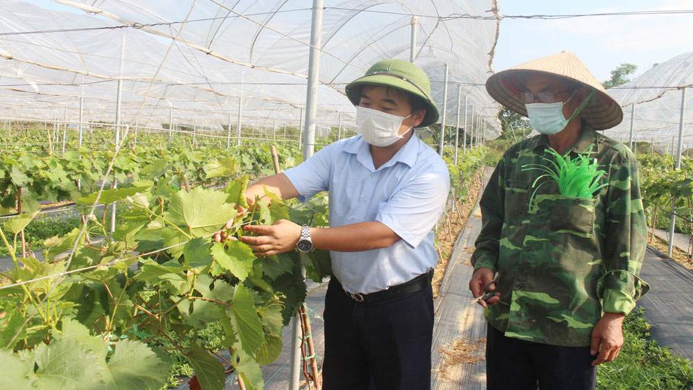 Hàng tuần, cán bộ của Trung tâm ứng dụng và chuyển giao công nghệ đến tận nơi kiểm tra, hướng dẫn người lao động thực hiện nghiêm quy trình kỹ thuật, bảo đảm cây phát triển tốt. Tương tự, cuối năm 2020, gia đình bà Thân Thị Tuyết, ở xã Hồng Thái (Việt Yên) quyết định phá bỏ 5 nghìn m2 cây ăn quả (cam, bưởi) để trồng 2 nghìn cây nho.