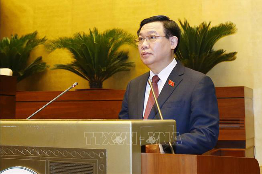 Chủ tịch Quốc hội khóa XIV Vương Đình Huệ phát biểu. Ảnh: Doãn Tấn/TTXVN