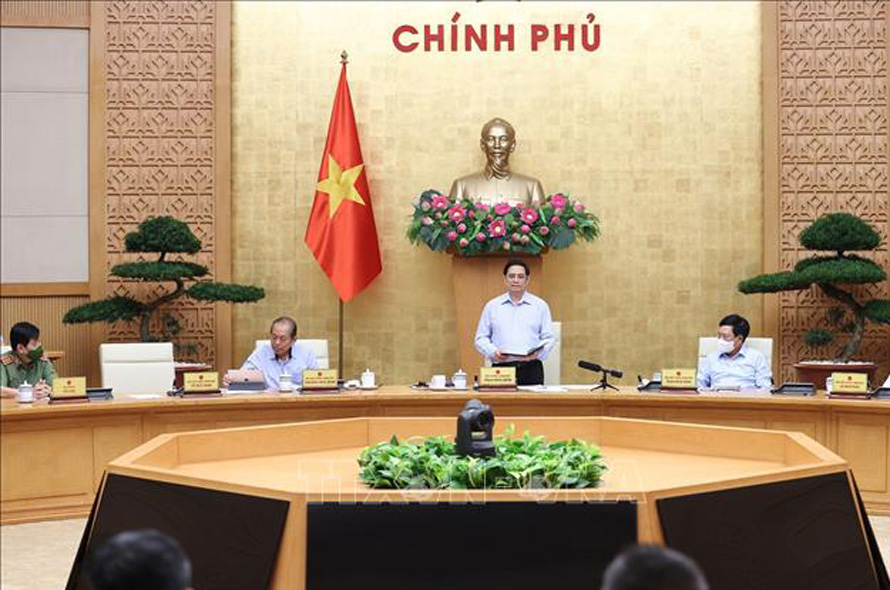 Thủ tướng Phạm Minh Chính phát biểu tại cuộc họp của Chính phủ với Ban Chỉ đạo Quốc gia phòng, chống COVID-19. Ảnh: Dương Giang/TTXVN