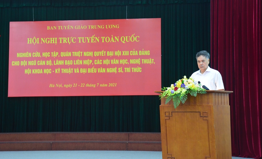 Đồng chí Phó trưởng Ban Tuyên giáo Trung ương nhấn mạnh: Hội nghị lần này tập trung nghiên cứu, học tập, quán triệt chuyên sâu Nghị quyết Đại hội XIII của Đảng trên các lĩnh vực văn học nghệ thuật, khoa học kỹ thuật. Trên cơ sở đó, tuyên truyền sâu rộng tới đội ngũ văn nghệ sĩ, trí thức cả nước, tạo sự thống nhất ý chí, quyết tâm chính trị, thúc đẩy, nâng cao hiệu quả của hoạt động văn hóa nghệ thuật, sáng tạo tri thức, tạo ra những sản phẩm, công trình có giá trị cao, thiết thực, góp phần hiện thực hóa một cách sinh động Nghị quyết của Đảng trong đời sống thực tiễn.