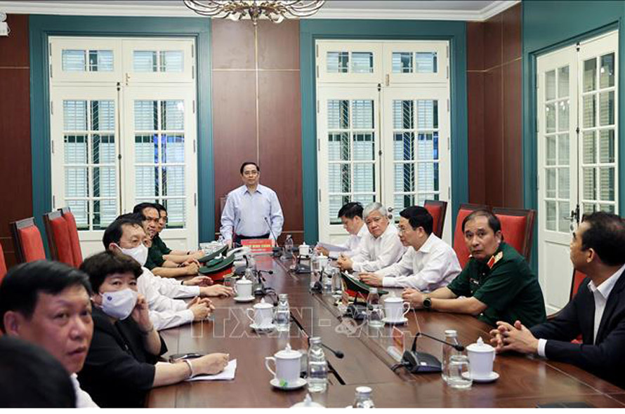 Thủ tướng Phạm Minh Chính thăm Trung tâm chỉ huy Chiến dịch tiêm chủng vaccine phòng COVID-19 toàn quốc. Ảnh: Dương Giang/TTXVN