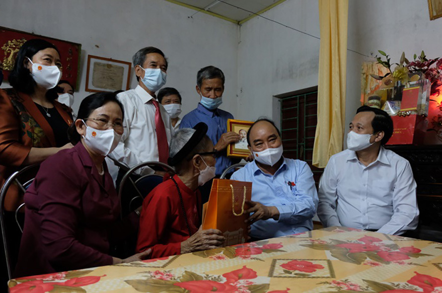 Chủ tịch nước Nguyễn Xuân Phúc đến thăm hỏi và tặng quà Mẹ Việt Nam anh hùng Nguyễn Thị Mờn.