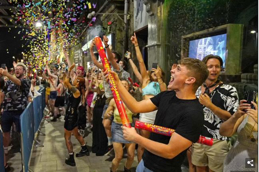 Lần đầu tiên trong nhiều tháng, người dân Anh đổ xô đến các câu lạc bộ đêm. Hành khách không cần đeo khẩu trang khi đi tàu. Nhà hàng phục vụ thực khách tại chỗ mà không cần lo giãn cách. Mặc dù số ca lây nhiễm nhảy vọt, chỉ có khoảng 50 bệnh nhân tử vong mỗi ngày.