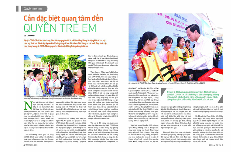 Ông Phùng Quốc Việt, Tổng Biên tập Báo Lao động và Xã hội, báo điện tử Dân sinh cho biết, ấn phẩm và chuyên trang “Vì trẻ em” có sự hợp tác của các chuyên gia, nhà quản lý, nhà văn, nhà báo, phóng viên trong cả nước… thực hiện chức năng thông tin, tuyên truyền chủ trương của Đảng, chính sách pháp luật của Nhà nước và Bộ Lao động - Thương binh và Xã hội về lĩnh vực trẻ em; giới thiệu mô hình, cá nhân điển hình tiên tiến trong đấu tranh với những biểu hiện vi phạm, tiêu cực nhằm bảo vệ trẻ em; phản ánh tâm tư, nguyện vọng, đời sống của trẻ em; kỹ năng bảo vệ, chăm sóc trẻ em…