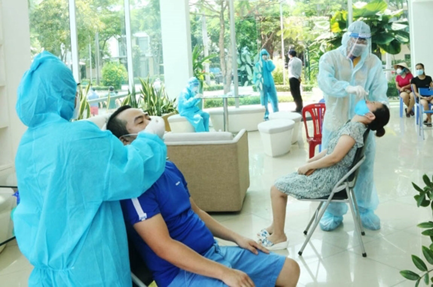 Lấy mẫu xét nghiệm tầm soát Covid-19 tại TP Thủ Đức. Ảnh: qdnd.vn