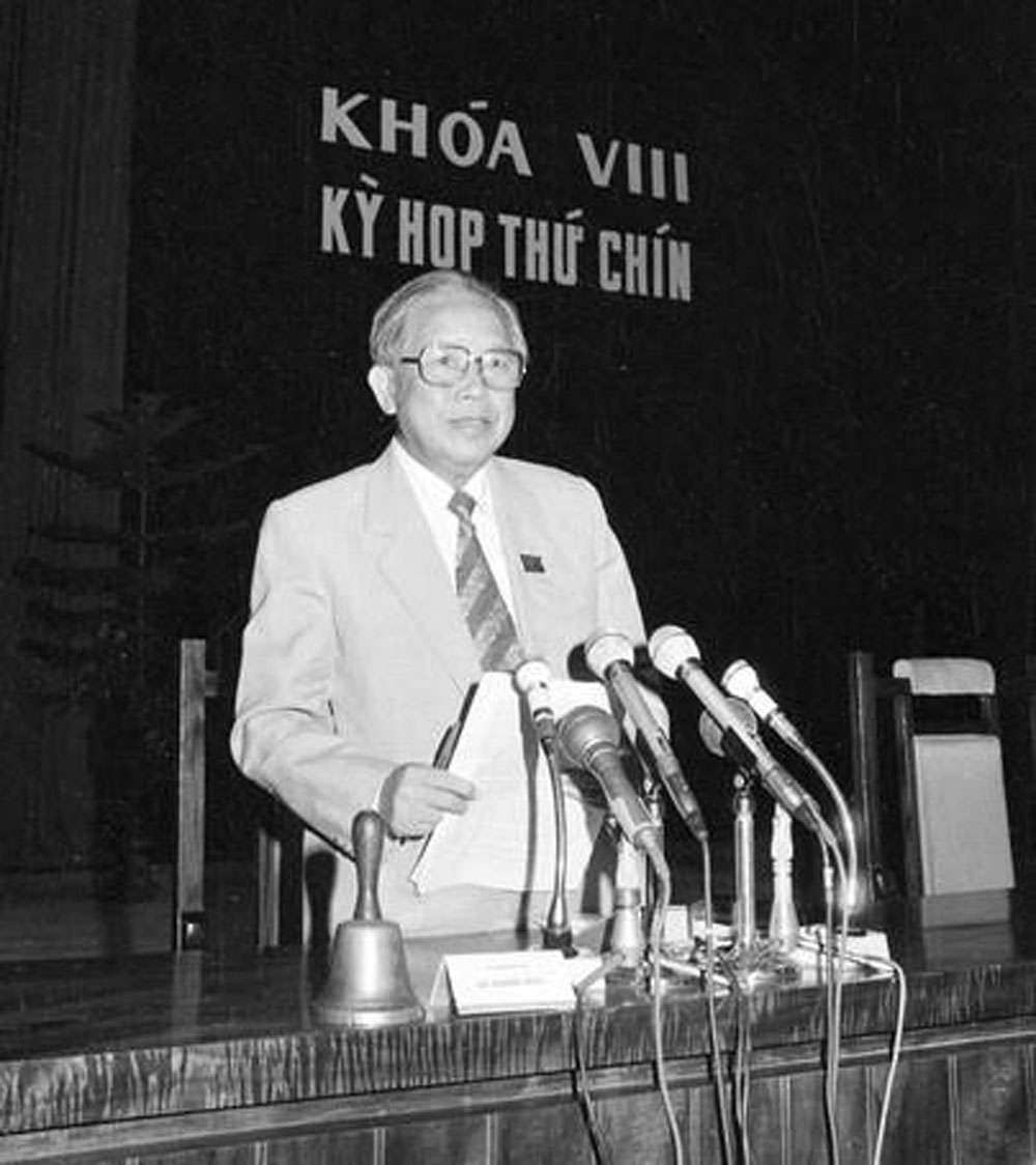 Chủ tịch Quốc hội Lê Quang Đạo phát biểu khai mạc Kỳ họp thứ 9, Quốc hội khóa VIII (27/7/1991). Ảnh: Kim Hùng - TTXVN |