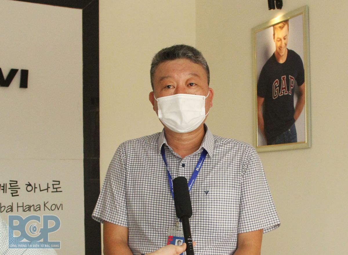 Ông Koh JeongMan - Giám đốc Công ty TNHH HaNa KoVi (Cụm công nghiệp Đồng Đình, Thị trấn Cao Thượng, huyện Tân Yên) cho biết, Công ty chuyên sản xuất quần, áo người lớn, trẻ em và mũ vải xuất khẩu sang thị trường Hàn Quốc. Trong tháng 5 và tháng 6, do ảnh hưởng của dịch Covid-19 nên hơn 600 lao động thuộc vùng cách ly và giãn cách xã hội tạm thời nghỉ việc để phòng, chống dịch.