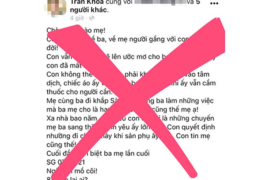 Nội dung đăng trên trang Facebook Trần Khoa về vụ "bác sĩ Khoa" rút ống thở đã được cơ quan chức năng xác định là thông tin giả và đã có hình thức xử phạt. Ảnh: chụp màn hình