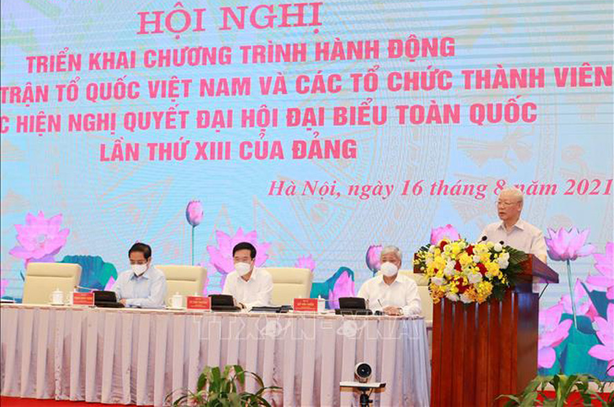 Tổng Bí thư Nguyễn Phú Trọng nêu rõ: thời gian gần đây, Mặt trận và các tổ chức thành viên đã thực hiện tốt quyền và trách nhiệm của mình, tham gia tích cực vào công tác tổ chức, vận động nhân dân thực hiện thắng lợi cuộc bầu cử đại biểu Quốc hội khóa XV và bầu cử đại biểu Hội đồng nhân dân các cấp nhiệm kỳ 2021 - 2026. Khi đại dịch COVID-19 xảy ra, lây lan, bùng phát ở nước ta, Mặt trận Tổ quốc Việt Nam và các tổ chức thành viên đã chủ động, sáng tạo, phát huy vai trò nòng cốt, phối hợp với các cơ quan nhà nước ra lời kêu gọi, tuyên truyền, vận động, phát huy sức mạnh đại đoàn kết toàn dân tộc, khơi dậy tinh thần tương thân, tương ái trong nhân dân, góp công, góp sức, góp tiền ủng hộ tuyến đầu phòng, chống dịch, bổ sung nguồn kinh phí của Chính phủ mua vaccine phòng dịch, góp phần ngăn chặn, kiềm chế sự gia tăng và đẩy lùi đại dịch COVID-19.