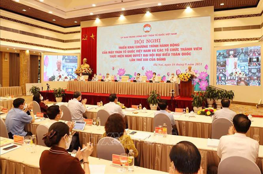 Sáng 16/8, Ban Thường trực Ủy ban Trung ương Mặt trận Tổ quốc Việt Nam phối hợp với các tổ chức thành viên tổ chức Hội nghị toàn quốc triển khai Chương trình hành động của Mặt trận Tổ quốc Việt Nam và các tổ chức thành viên thực hiện Nghị quyết Đại hội đại biểu toàn quốc lần thứ XIII của Đảng.