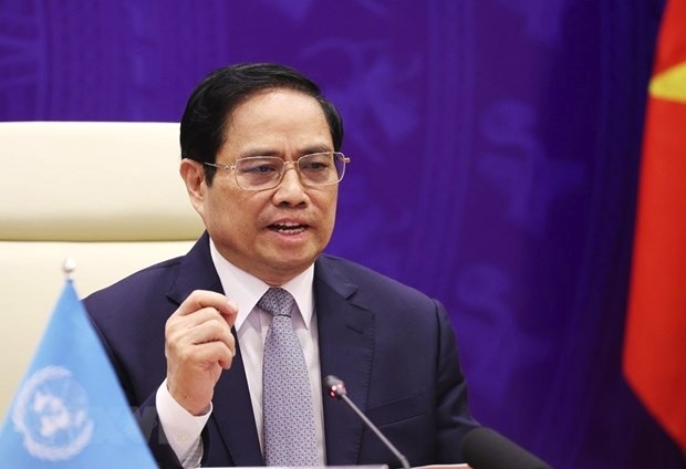 Thủ tướng Phạm Minh Chính phát biểu tại Phiên thảo luận mở Cấp cao của Hội đồng Bảo an Liên hợp quốc về an ninh biển, ngày 9/8. (Ảnh: TTXVN)