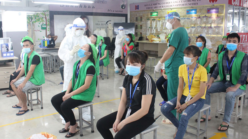 Hiện nay, các DN đều chấp hành nghiêm công tác phòng, chống dịch. Tại mỗi DN đều thành lập Tổ an toàn Covid để giám sát sức khỏe người lao động, khách hàng ra, vào công ty; bố trí phòng y tế khu cách ly cho công nhân, đo thân nhiệt cho người lao động trước khi vào phân xưởng và lấy mẫu xét nghiệm đủ số lần được yêu cầu. Một số công ty có quy mô lớn như Công ty TNHH Crystal Martin Việt Nam; Công ty TNHH Công nghệ chính xác Fuyu Việt Nam (KCN Quang Châu)… bố trí cho công nhân ngoại tỉnh ở tập trung, hạn chế tiếp xúc với bên ngoài để phòng dịch. Các huyện, TP đang nỗ lực thực hiện “mục tiêu kép” vừa phòng, chống dịch, vừa phát triển KT-XH, tập trung giải phóng mặt bằng các dự án, tạo điều kiện thuận lợi cho DN xây dựng nhà xưởng, mở rộng quy mô sản xuất.Thực hiện sự chỉ đạo trên, mới đây Ban Quản lý Các KCN tỉnh có văn bản yêu cầu các DN tăng cường tổ chức các điểm kiểm soát check in (kiểm tra các thông tin theo định kỳ) và khai báo y tế điện tử phục vụ công tác phòng, chống dịch. DN trong các KCN bảo đảm việc kiểm soát 100% công nhân, người lao động, khách ra, vào phải quét mã QR Code tại các điểm check in ít nhất 1 lần/ngày. Đối với người lao động yêu cầu cài đặt phần mềm Bluezone và thực hiện khai báo y tế đầy đủ để check in thiết bị quét mã. Ngoài ra, Ban duy trì tổ công tác hỗ trợ DN khôi phục sản xuất để kiểm tra, giám sát công tác phòng, chống dịch, kịp thời xử lý đơn vị vi phạm.