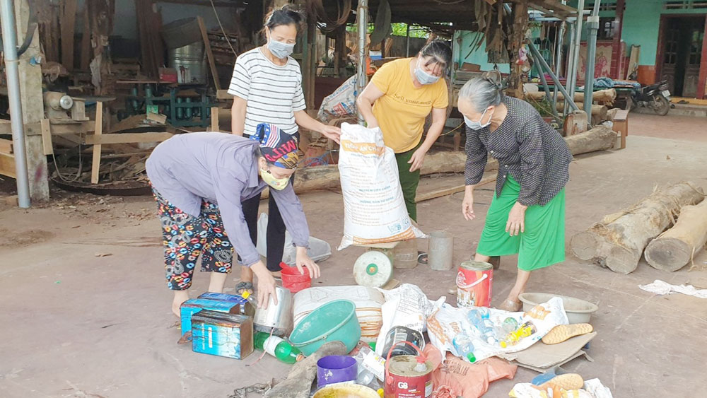 Hội LHPN xã An Hà (Lạng Giang) thu gom phế liệu nhựa gây quỹ.