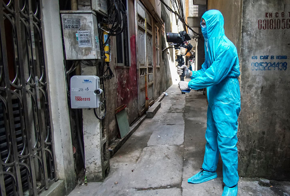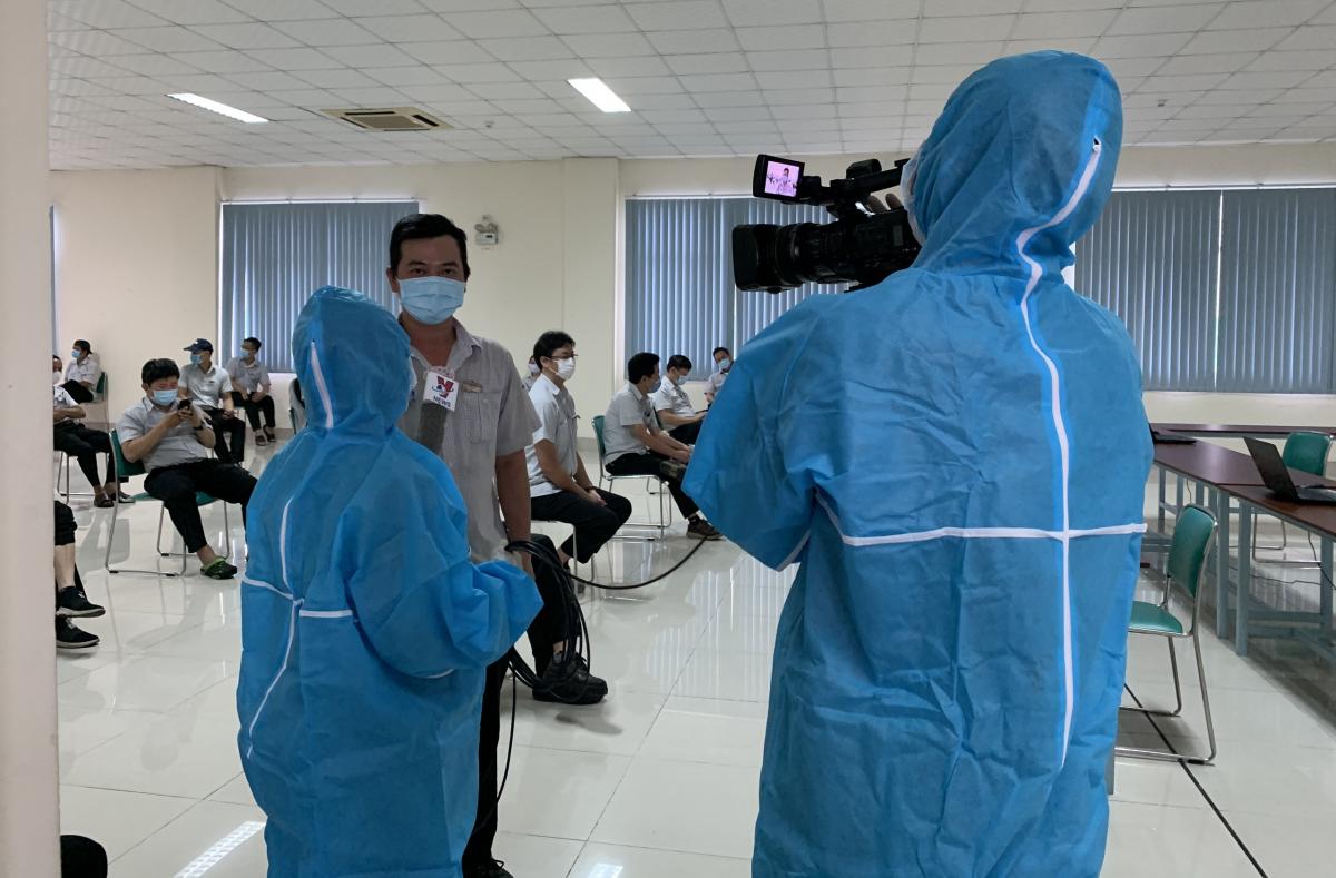 Nhắc đến tác nghiệp mùa dịch, không thể không nhắc đến các anh chị báo chí, truyền hình đang tác nghiệp tại tâm dịch TP.HCM. Ảnh: NVCC