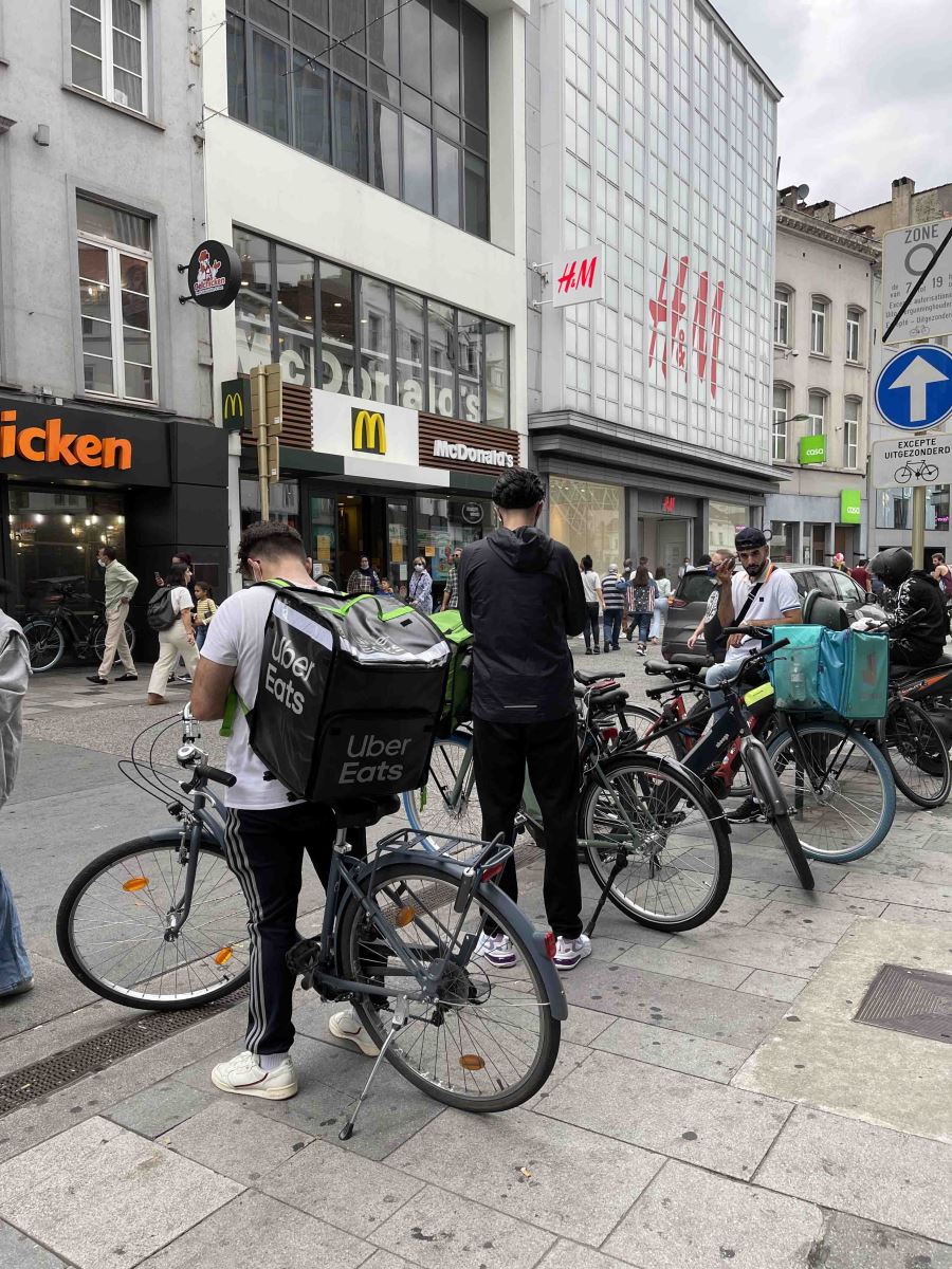 Đối với những người giao hàng bằng xe đạp và xe tay ga, Porte de Namur ở Brussels là một trong những "điểm nóng" của thủ đô vì mật độ dày đặc các quán ăn nhanh. Đội ngũ giao hàng luôn tập trung rất đông ở đây để chờ các đơn hàng mới.