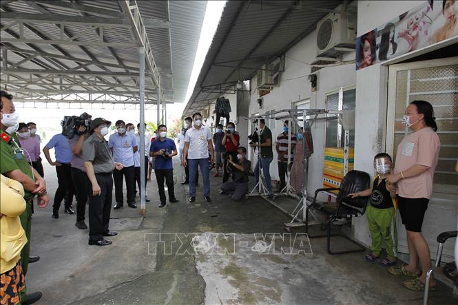 Thủ tướng Phạm Minh Chính kiểm tra về công tác theo dõi, điều trị tại khu cách ly F1 của công nhân viên chức Tân cảng Sài Gòn COVID-19 tại trường mầm non Sơn Ca, thành phố Thủ Đức. Ảnh: Thanh Vũ/TTXVN