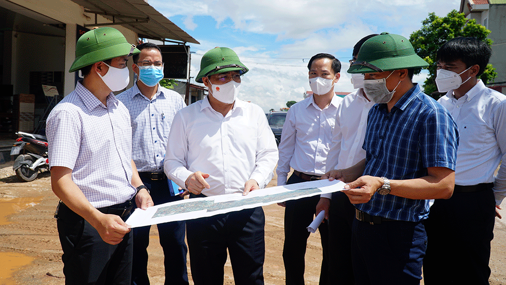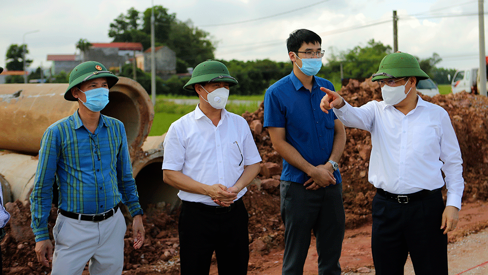 Đồng chí Dương Văn Thái kiểm tra tại ĐT 298, đoạn qua địa bàn huyện Việt Yên. |