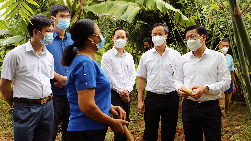 Đoàn công tác thăm mô hình trồng măng lục trúc tại thôn Ninh Khánh, xã Ngọc Châu (Tân Yên).