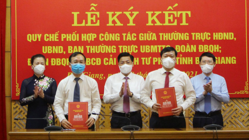 Chiều 8/9, Thường trực HĐND, UBND, Ủy ban MTTQ tỉnh, Đoàn Đại biểu Quốc hội (ĐBQH), Ban Chỉ đạo (BCĐ) Cải cách tư pháp tỉnh Bắc Giang tổ chức lễ ký kết Quy chế phối hợp công tác giữa các bên.