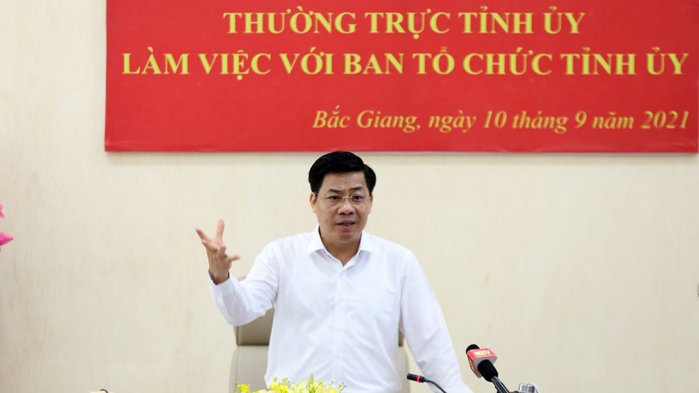 Sáng 10/9, Thường trực Tỉnh ủy Bắc Giang làm việc với Ban Tổ chức Tỉnh ủy về công tác tham mưu xây đựng đội ngũ cán bộ; nâng cao năng lực lãnh đạo, sức chiến đấu của tổ chức cơ sở đảng và chất lượng đảng viên trong Đảng bộ tỉnh; nhiệm vụ, giải pháp thời gian tới.