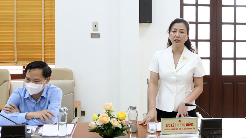 Đồng chí Lê Thị Thu Hồng phát biểu tại buổi làm việc. |