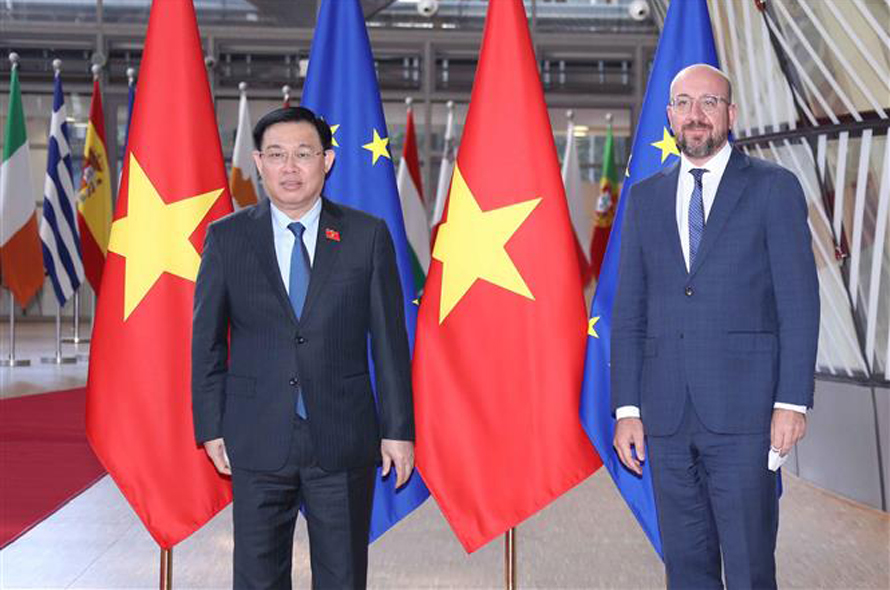 Chủ tịch Quốc hội Vương Đình Huệ hội kiến Chủ tịch Hội đồng Châu Âu. Ảnh: Doãn Tấn/TTXVN