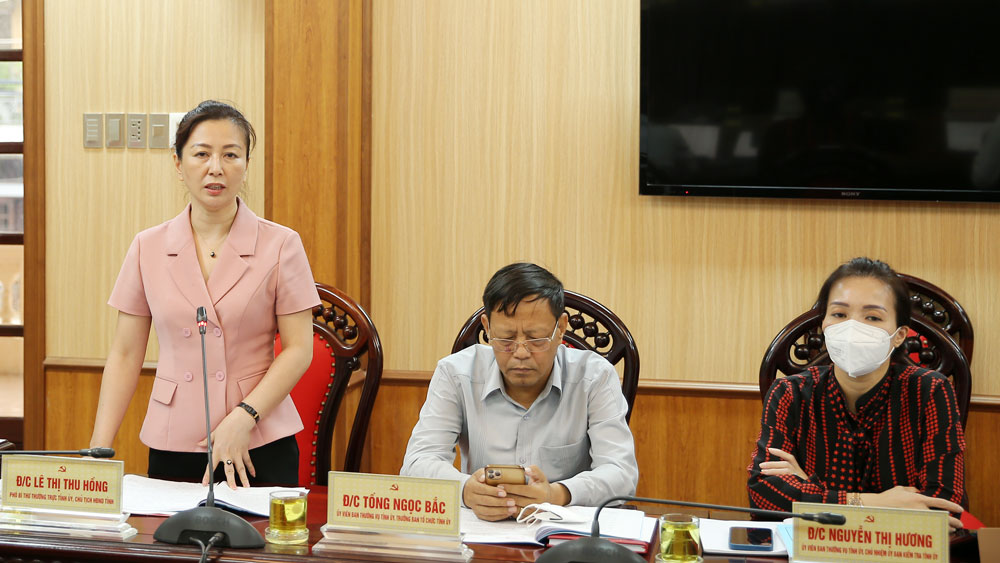 Tại buổi làm việc, đồng chí Lê Thị Thu Hồng đề nghị Ban Nội chính cần quan tâm hơn đến việc phối hợp, đánh giá kết quả công tác nội chính, PCTN, tiêu cực của các huyện ủy, thành ủy.