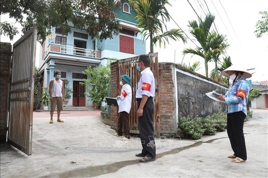 Thôn Trại Thượng, xã Lãng Sơn, huyện Yên Dũng(Bắc Giang) có 5 Tổ COVID cộng đồng, luân phiên ngày nào cũng đến từng nhà, hỏi thăm tình sức khoẻ, ghi chép yêu cầu của các hộ gia đình để lên phương án hỗ trợ. Ảnh: Danh Lam/TTXVN