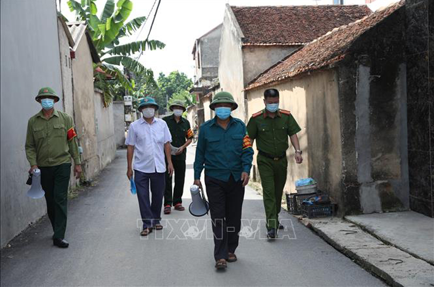 Thôn Trại Thượng, xã Lãng Sơn, huyện Yên Dũng (Bắc Giang) có 5 Tổ COVID cộng đồng, luân phiên ngày nào cũng đến từng nhà, hỏi thăm tình sức khoẻ, ghi chép yêu cầu của các hộ gia đình để lên phương án hỗ trợ. Ảnh: Danh Lam/TTXVN