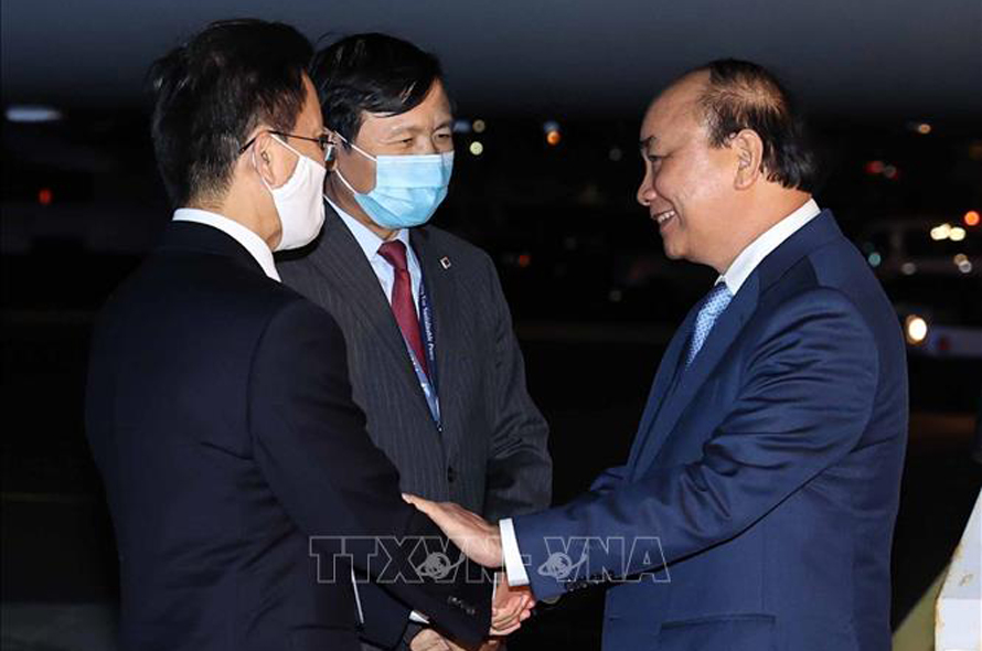 Đại sứ Việt Nam tại Hoa Kỳ Hà Kim Ngọc và Đại sứ Đặng Đình Quý, Trưởng Phái đoàn thường trực Việt Nam tại Liên hợp quốc đón Chủ tịch nước Nguyễn Xuân Phúc tại sân bay quốc tế J.F. Kennedy. Ảnh: Thống Nhất/TTXVN