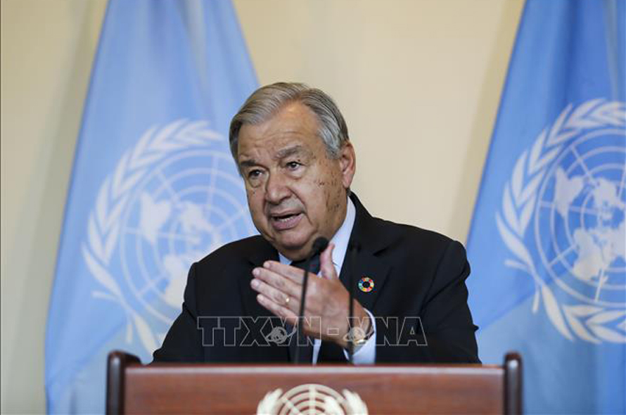 Tổng thư ký Liên hợp quốc Antonio Guterres phát biểu tại cuộc họp LHQ ở New York, Mỹ. Ảnh: THX/TTXVN