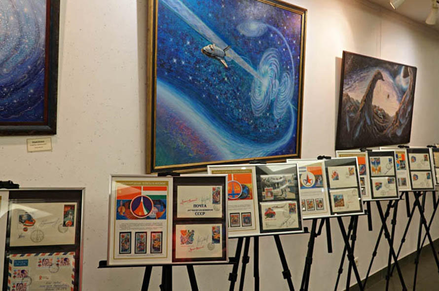 Triển lãm hội hoạ mang tên “ART-Interkosmos thế kỷ XXI” trong khuôn khổ của sự kiện. (Ảnh: QUẾ ANH)