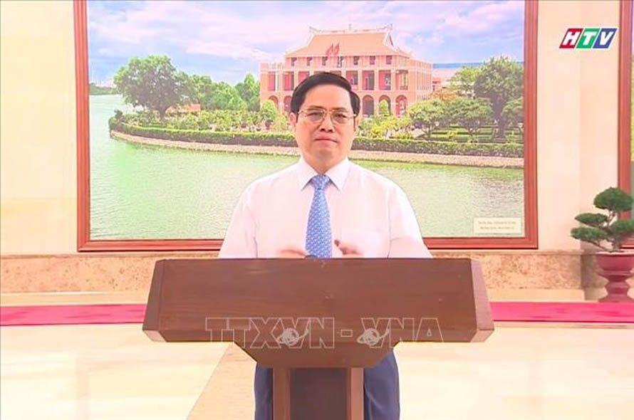 Thủ tướng Chính phủ Phạm Minh Chính phát biểu tại chương trình trực tuyến (ảnh chụp qua màn hình). Ảnh: Thu Hương/TTXVN