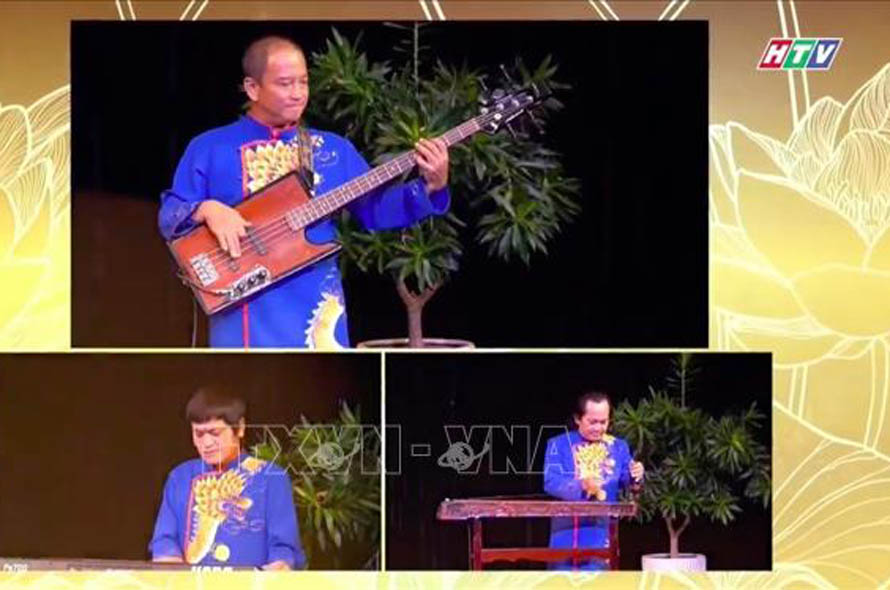Tiết mục "Vó ngựa trời Nam" do Đoàn nhạc dân tộc Nhà hát Ca múa nhạc dân tộc Bông Sen thể hiện (ảnh chụp màn hình). Ảnh: Thu Hương/TTXVN