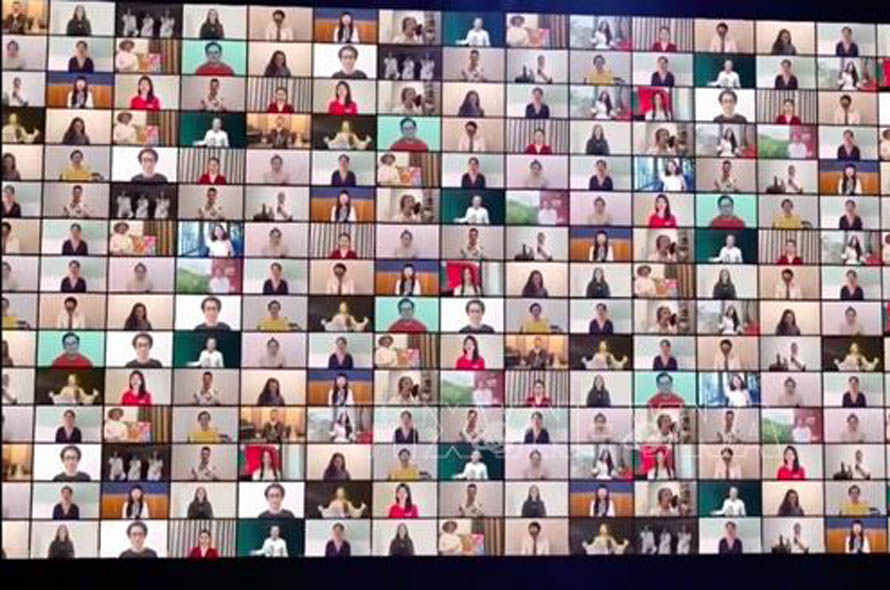 Tập thể ca sĩ thể hiện ca khúc "Nối vòng tay lớn" (ảnh chụp màn hình). Ảnh: Thu Hương/TTXVN