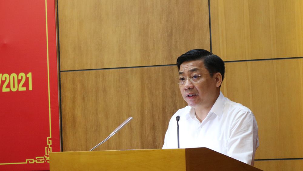 Phát biểu khai mạc hội nghị, đồng chí Dương Văn Thái nhấn mạnh, chúng ta vừa trải qua giai đoạn khó khăn nhất trong rất nhiều năm trở lại đây khi dịch Covid-19 bùng phát trên địa bàn tỉnh, Bắc Giang trở thành tâm dịch của cả nước. Trước tình hình đó, cả hệ thống chính trị và nhân dân các dân tộc trong tỉnh đã phải gồng mình, căng sức thực hiện đồng thời 3 nhiệm vụ hết sức quan trọng: Tập trung kiểm soát, ngăn chặn, đẩy lùi dịch bệnh; chuẩn bị tốt các điều kiện và tổ chức thành công cuộc bầu cử đại biểu Quốc hội và HĐND các cấp nhiệm kỳ 2021-2026; nỗ lực duy trì sản xuất, hỗ trợ nhân dân tiêu thụ nông sản trong bối cảnh dịch bệnh diễn biến phức tạp.