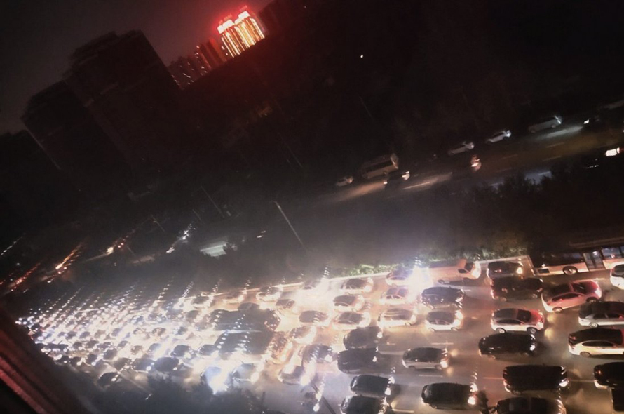 Giao thông ách tắc tại thủ phủ Thẩm Dương, tỉnh Liêu Ninh do đèn tín hiệu không hoạt động vì mất điện. Ảnh: Weibo