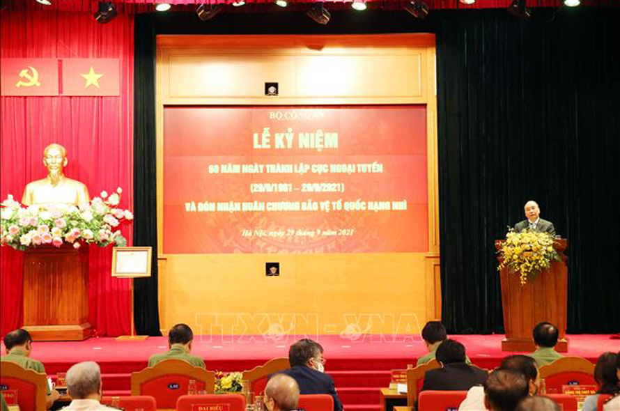 Thay mặt lãnh đạo Đảng, Nhà nước, Chủ tịch nước Nguyễn Xuân Phúc nhiệt liệt biểu dương, chúc mừng những thành tích, những chiến công của các thế hệ cán bộ, chiến sỹ lực lượng Ngoại tuyến Công an nhân dân đã không ngừng phấn đấu công tác, chiến đấu và hy sinh trong suốt 60 năm qua. Với sự quan tâm sâu sắc của Đảng, Nhà nước; lãnh đạo, chỉ đạo trực tiếp của Đảng ủy cơ quan Trung ương, Bộ Công an cùng sự giúp đỡ của nhân dân, các thế hệ cán bộ, chiến sỹ Cục Ngoại tuyến luôn nêu cao tinh thần cách mạng, vượt qua muôn vàn khó khăn, gian khổ chiến đấu, hoàn thành thắng lợi mọi nhiệm vụ, lập nhiều chiến công xuất sắc, góp phần tô thắm thêm truyền thống anh hùng của Công an nhân dân Việt Nam.