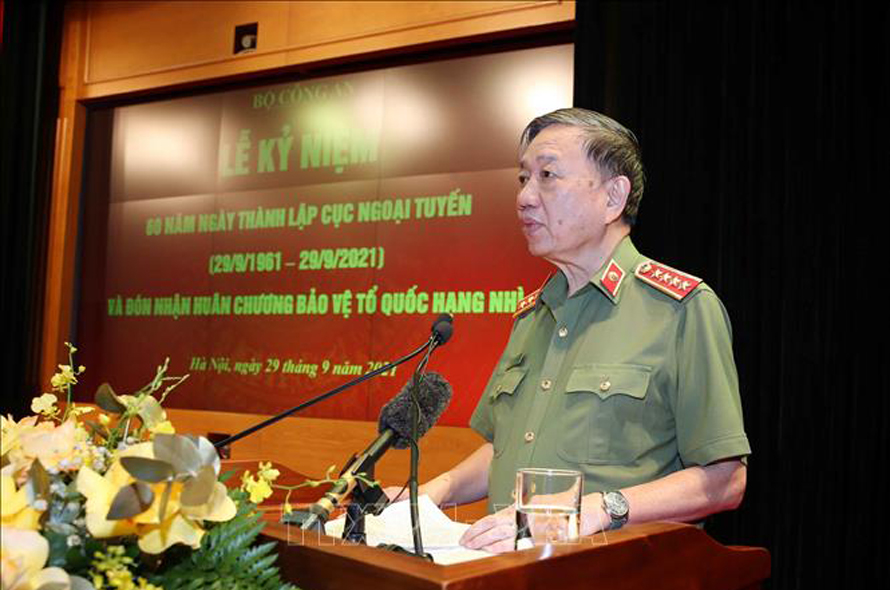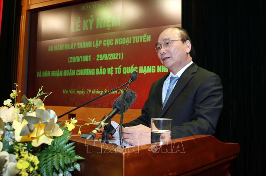 Chiều 29/9, tại Hà Nội, Chủ tịch nước Nguyễn Xuân Phúc dự Lễ Kỷ niệm 60 năm Ngày thành lập lực lượng Ngoại tuyến Công an nhân dân (29/9/1961 - 29/9/2021). Tham dự buổi lễ còn có Đại tướng Tô Lâm, Ủy viên Bộ Chính trị, Bộ trưởng Bộ Công an.